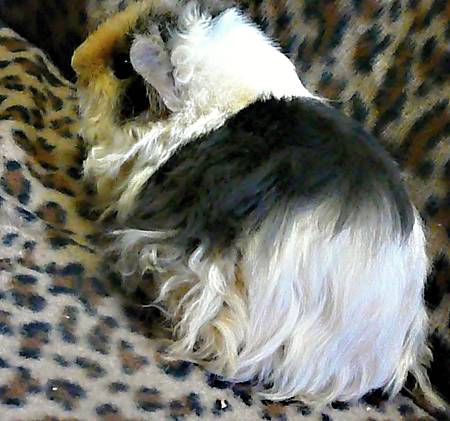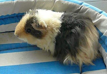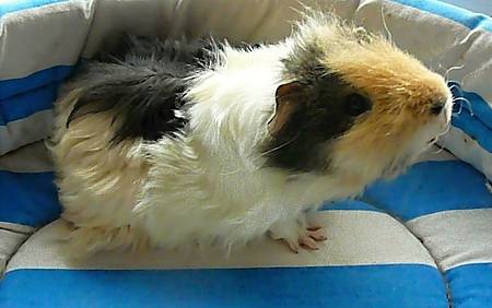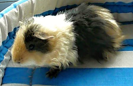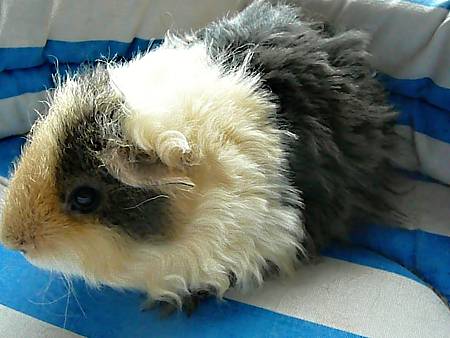 Čistokrevný texel od Olči a Oldy, narozený 6.listopadu 2010. Moc hodný kluk vhodný do hobbychovu nebo na mazlíka... Když " vybije energii" ( běháním, skotačením a šmejděním po kleci nebo prostoru, kam jej pustíte ), je to to nejhodnější morčátko pod sluncem ;-))) K 20.lednu váží pěkných 525 g. Srst bude "texlovská" - delší, krepovitá, - s údržbou ale nejsou problémy, nemusíte se bát. Nečeše se, nekoupe ! ( Jen v krajních případech ). Snášenlivý, zvyklý na společnost ostatních morčátek, konkrétně na Kulíška a Olivera, - kluci jsou spolu naprosto bez problémů Odjel spolu s Kulíškem dne 2.3.201 . .